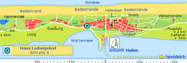 Deich, dadurch in den meisten Wohnungen freien Blick aufs Wattenmeer,