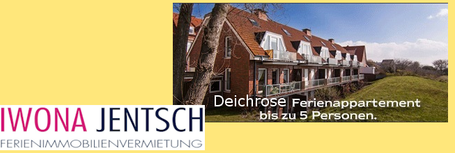 | Die sonnendurchflutete und moderne Ferienwohnung Deichrose befindet sich am Ortseingang von Juist, nur wenige Meter vom Juister Hafen und Wattenmeer entfernt. Die großzügig geschnittene 3-Zimmer-Wohnung über 2 Etagen ist der richtige Platz für Erholung pur.