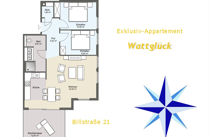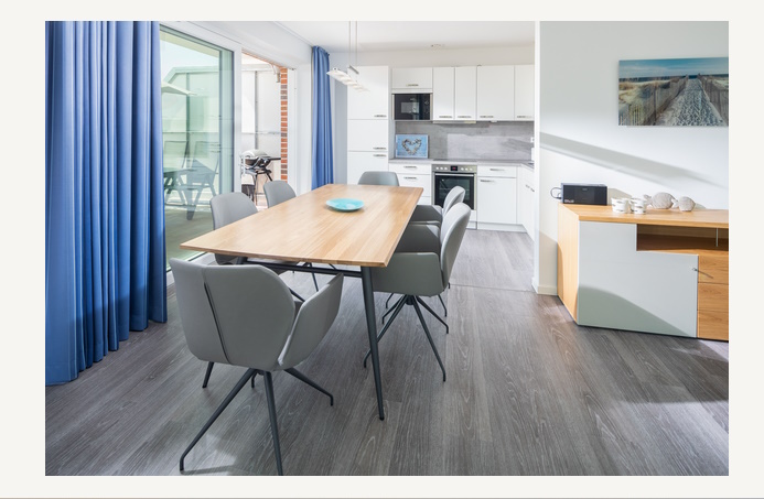 | In dieser Anlage bieten wir Ihnen eine der exklusivsten Wohnungen mit Blick Richtung Watt an. Im ersten Stock des Hauses befindet sich diese moderne Ferienwohnung, die durch Eleganz und Komfort besticht. Diese niveauvolle Immobilie ist mit modernster Technologie und Einrichtung und ermöglicht die Unterbringung von bis zu 4 Personen. 2 Schlafzimmer mit Doppelbetten, ein Wohnzimmer mit einer modernen Küchenzeile und modernen Geräten, ein Duschbad und ein nach Süden ausgerichteter Balkon mit Strandkorb gehören zur gehobenen Ausstattung dieser Ferienwohnung, die die höchsten Ansprüche unserer Gäste erfüllt. Die gesamte Wohnung verfügt über eine komfortable Inneneinrichtung und wird die Herzen unserer Gäste höher schlagen. In nur wenigen Gehminuten erreicht man das Zentrum der Insel und den Strand. Werden Sie unsere Gäste und genießen Sie den Aufenthalt in der Wohnung Wattglück.