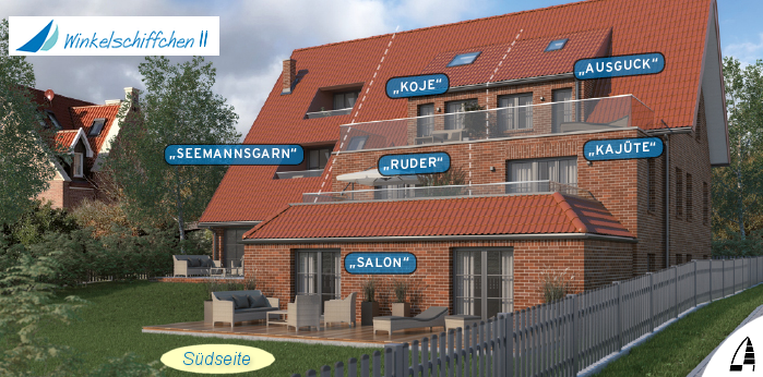 Ferienhaus „Winkelschiffchen 2". liegt nur wenige Meter vom ersten Winkelschiffchen entfernt. Die Wohnungen haben freiem Blick übers Watt. Sechs moderne und komfortable Ferienwohnungen für bis z 8 Personen stehen für Ihren Urlaub auf Juist zur Verfügung.