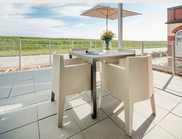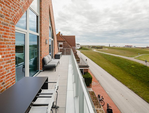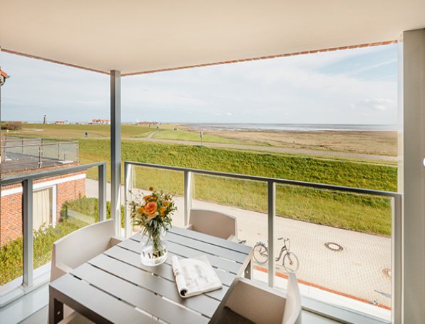 Villa Sohn bietet vier Wohnungen in der Billstraße 9 auf Juist mit Ausblick über Salzwiesen und Wattenmeer.